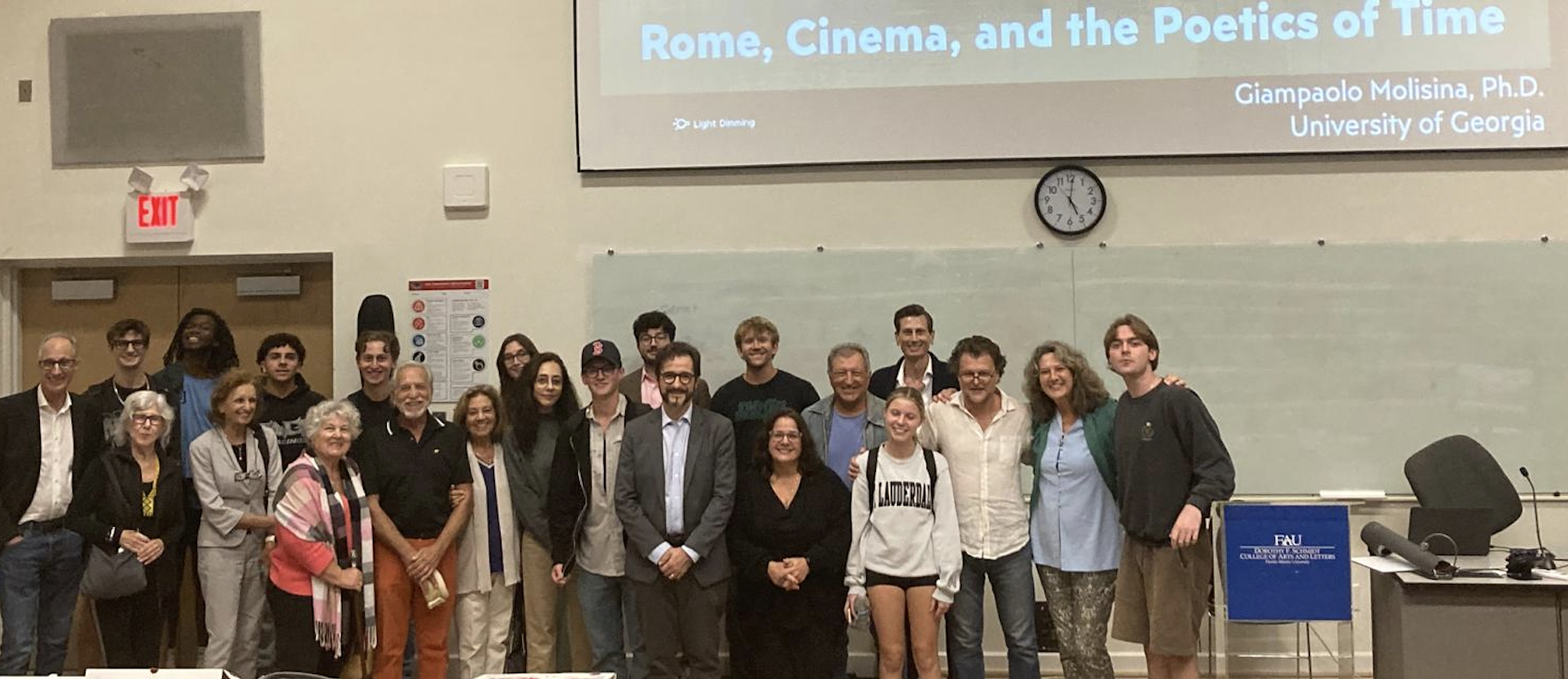 Dr. Giampaolo Molisina of the University of Georgia’s Department of Romance Languages, delivered the keynote address at Florida Atlantic University’s Film Retrospective dedicated to Rome on November 6. The event, organized by FAU’s Italian Program within the Department of Languages, Linguistics, and Comparative Literature, brought together an enthusiastic audience of graduate and undergraduate students as well as members of the local community.