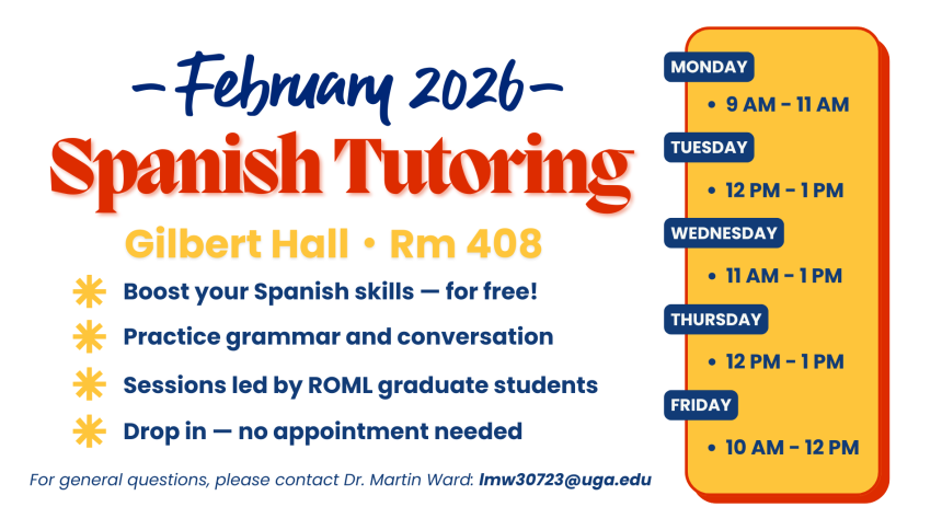 The Department of Romance Languages offers free language tutoring for current students in French, Italian, Portuguese, and Spanish. New for Spring 2026, we’ve added French conversational practice sessions.